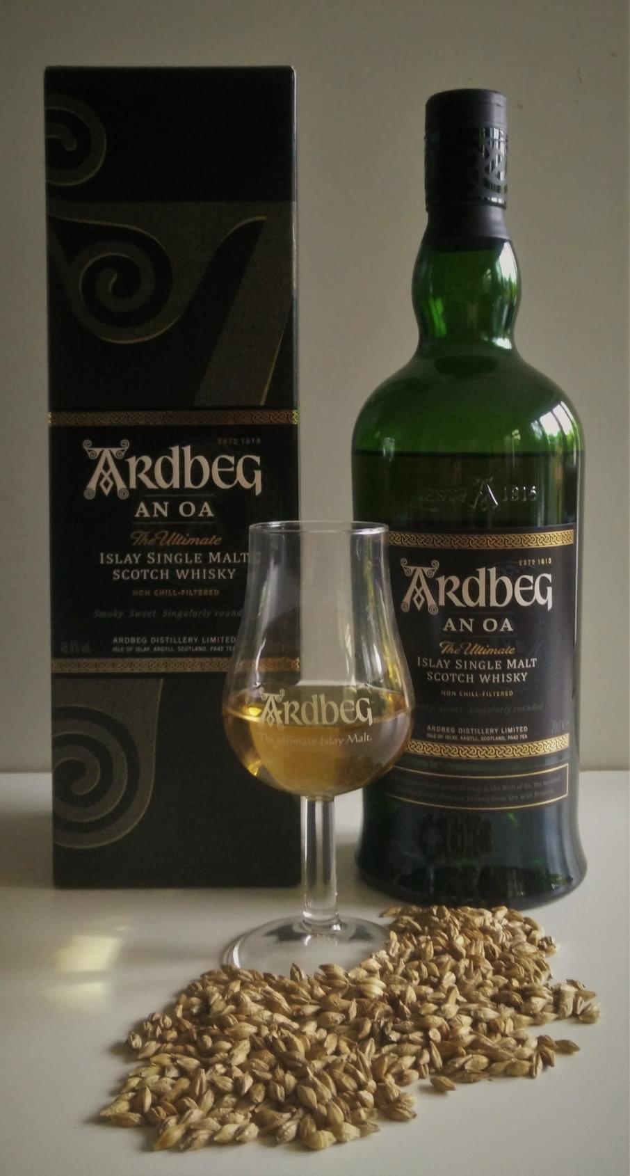 Ardbeg An Oa không niêm yết số năm tuổi (NAS), được tạo ra từ 3 loại thùng: Gỗ sồi mới được đốt, thùng sherry Pedro Ximenez (PX Cask) và thùng Bourbon đổ lần đầu. Tất cả hỗn hợp nói trên sẽ được trưởng thành thêm một lần nữa trong thùng gỗ sồi Pháp có tên là “Gathering Vat” trong “Gathering Room” tại nhà kho của Ardbeg. Phương pháp này cũng tương tự như Solera Vatting mà chúng ta bắt gặp với Glenfiddich hay Glenlivet vùng Speyside. Kết quả cuối cùng là một chai single malt whisky được đóng ở mức 46,6% ABV và không lọc lạnh (non-chilled filter)