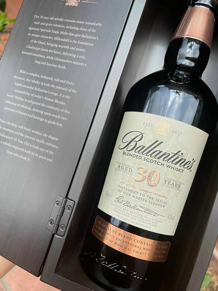 Ballantine's 30 năm là dòng whisky tinh tế. Quá trình sản xuất được các Master Blender công phu lựa chọn từ các thùng rượu ngon nhất để đi pha chế với nhau. Rượu Ballantine 30 với hương thơm nhẹ nhàng mùi trái cây, mùi khói gỗ sồi cộng với vị tròn đều, mạnh mẽ của mật ong, hoa cỏ và trái cây tạo nên một Ballantine’s 30 quyến rũ và ngon tuyệt.