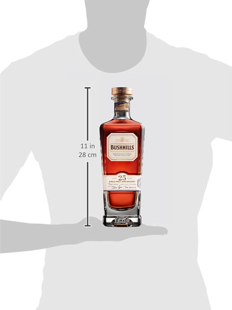 Bushmills 25 Year Old mang đến một trải nghiệm whisky tinh tế và phong phú với sự kết hợp hoàn hảo giữa trái cây, gia vị và hương gỗ. Đây là một lựa chọn xuất sắc cho những ai yêu thích whisky và muốn thưởng thức một sản phẩm cao cấp.