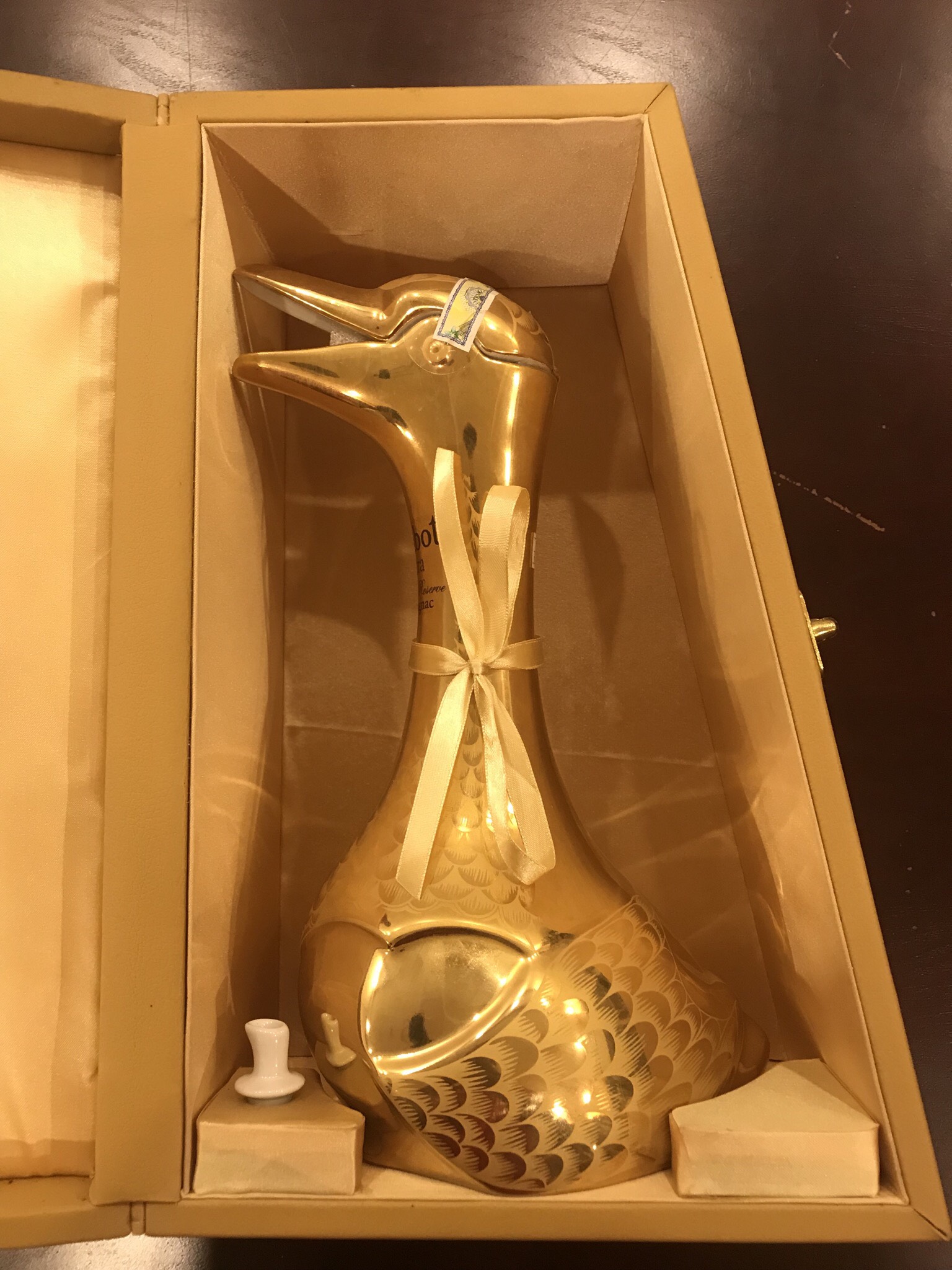 Rượu Chabot Armagnac Gold Goose Extra với thiết kế hình thiên nga biểu tượng cho sự may mắn và giàu có.Rượu Chabot Armagnac Gold Goose Extra chứa trong bình là dòng rượu quý hiếm vô cùng đặc biệt đây là sản phẩm được các tầng lớp quý tộc và thương gia giàu có sữ dụng trong các bữa tiệc sang trọng chiêu đãi khách quý tuyệt vời là những gì mà ta có thể miêu tả về sản phẩm nên sẽ không quá ngạc nhiên khi đây là dòng rượu luôn nằm trong top doanh số bán hàng cao nhất rất được các quý ông ưa chuộng và lựa chọn.