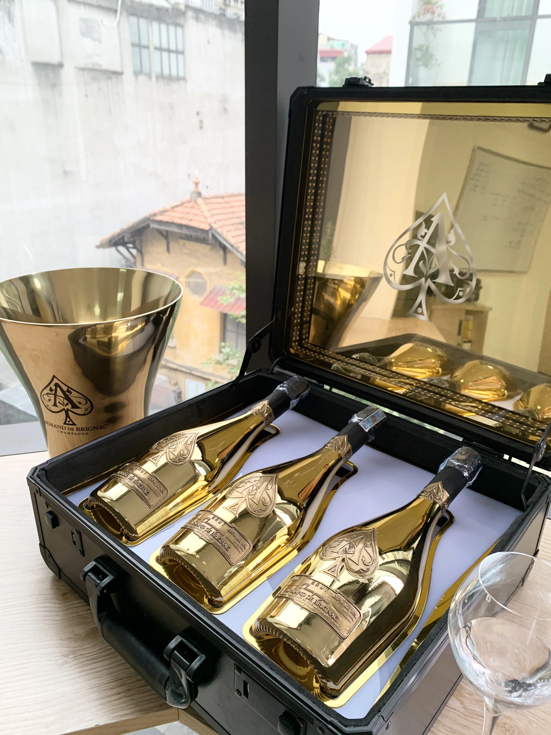 Rượu Champagne Armand de Brignac Gold Brut - Champgane lá bài Át bích, là dòng Champgane cao cấp chỉ dành cho đại tiệc.