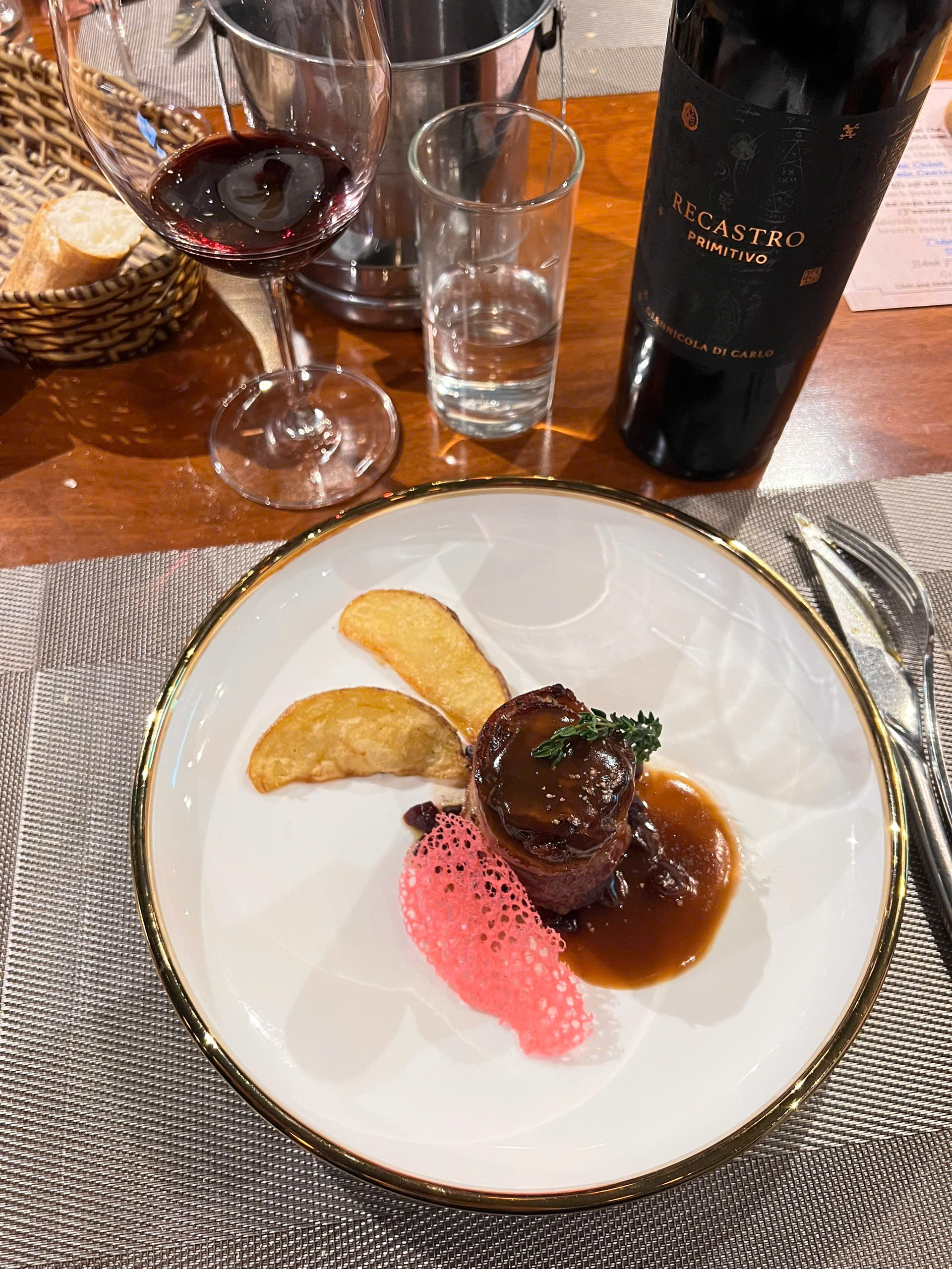 🍽 Thực đơn ẩm thực Pháp đặc sắc do đầu bếp của Le Resto thiết kế riêng, giúp tôn vinh trọn vẹn hương vị của từng dòng vang.