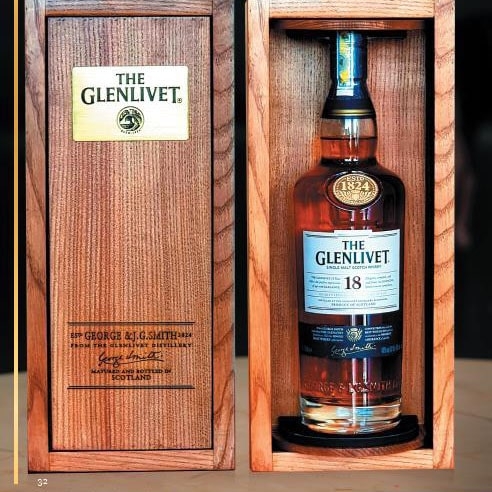 Glenlivet 18 Năm Hộp Gỗ có hương mật ong và kẹo bơ với vị hạt phỉ và cay nồng và kéo dài hương vị.
