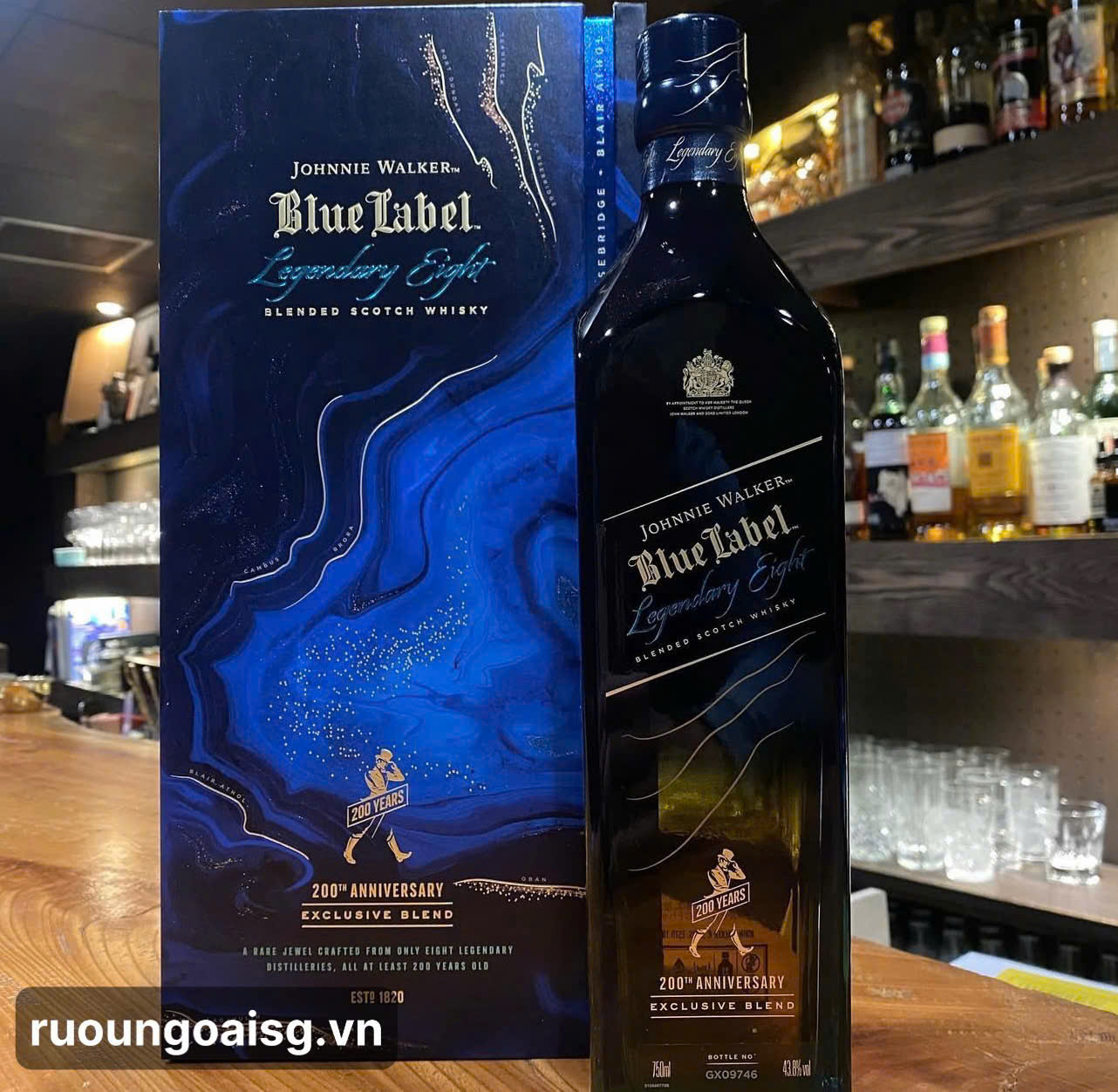 Rượu Johnnie Walker Blue Label Legendary Eight phát hành nhân sự kiện kỷ niệm 200 năm hành trình của thương hiệu này. Các thành phần mang đi phối trộn với nhau cũng được chọn lựa kỹ từ kho tàng của 8 nhà chưng cất từ các vùng của Scotland, trong đó có nhà máy đã đóng cửa (trong ngành rượu gọi những nhà máy đã đóng cửa này là "Ghost") để phối trộn với nhau. Những nhà máy chưng cất này được liệt kê trên thân chai và hộp gồm: Oban, Lagavulin, Teaninich, Port Dundas, Brora, Cambus, Blair Athol và Carsebridge.