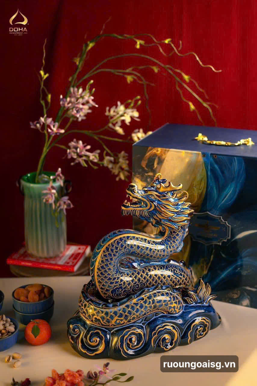 - “Tôi rất thích thiết kế của rượu rồng sứ Doha Royal Darius Brandy XO Gold 23k. Chai rượu được làm từ chất liệu sứ hỏa biến cao cấp, với màu xanh ngọc đặc trưng, kết hợp với hình tượng rồng uy nghi, dũng mãnh. Rượu rất sang trọng và tinh tế, thích hợp để làm quà biếu tặng.”
