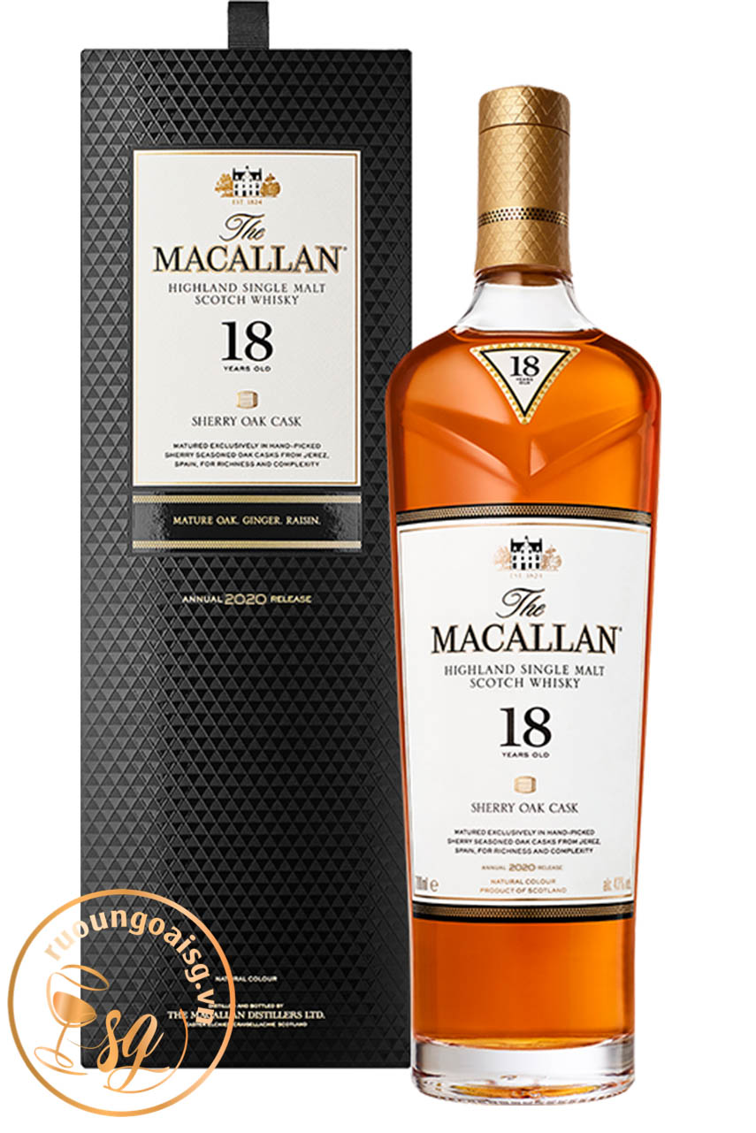 Rượu Macallan 18 năm Double Cask lần đầu phát hành năm 2020 bổ sung vào core range của nhà Macallan. Macallan 18 Double Cask được ủ từ 2 loại thùng gỗ sồi từ Châu Âu và Mỹ nhưng đều được ủ qua rượu sherry (American and European sherry seasoned oak casks) nên nước rượu cũng khá đậm.