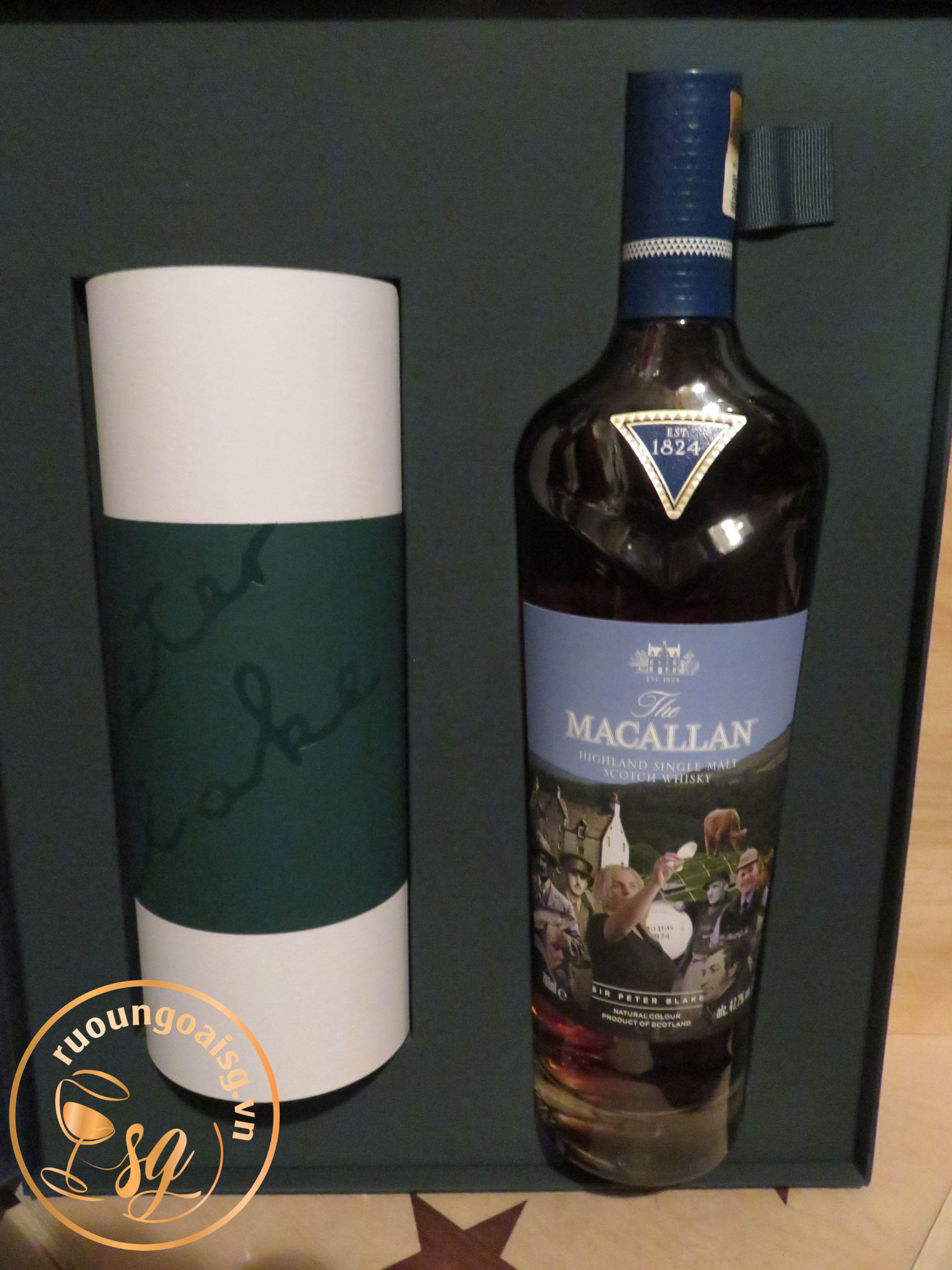 Hộp trình bày có chai rượu, giấy chứng nhận nêu chi tiết lịch sử và di sản mà tác phẩm dựa trên đó, và tác phẩm nghệ thuật được in trên một cuộn giấy. Cuộn giấy màu rực rỡ này chứa một bức ảnh ghép đại diện cho các giai thoại từ bộ sưu tập rộng lớn hơn, được miêu tả theo phong cách riêng biệt của Ngài Peter Blake. Một lớp phủ giấy truy tìm cung cấp thông tin về từng nhân vật trong lịch sử của The Macallan mà Ngài Peter đã chọn để đưa vào tác phẩm của mình