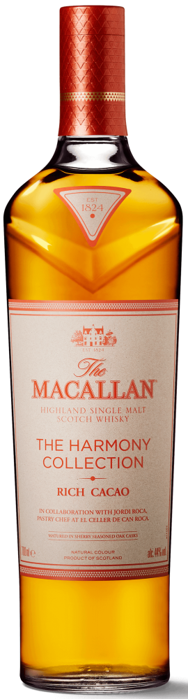 Macallan The Harmony Collection Rich Cacao - Là sự hợp tác với đầu bếp bánh ngọt nổi tiếng Jordi Roca của nhà hàng ba sao Michelin El Celler de Can Roca, bản phát hành này mang thế giới sô cô la và rượu whisky vào cuộc sống. Để tạo ra loại rượu whisky phiên bản giới hạn đầu tiên trong chuỗi phát hành hàng năm mới, Nhà sản xuất rượu Macallan Polly Logan đã bắt đầu một cuộc hành trình độc đáo đến Girona, Tây Ban Nha, nơi cô đắm mình trong thế giới sô cô la, khám phá quy trình sản xuất sô cô la và khám phá ra sự đặc biệt hồ sơ hương vị tại Casa Cacao.