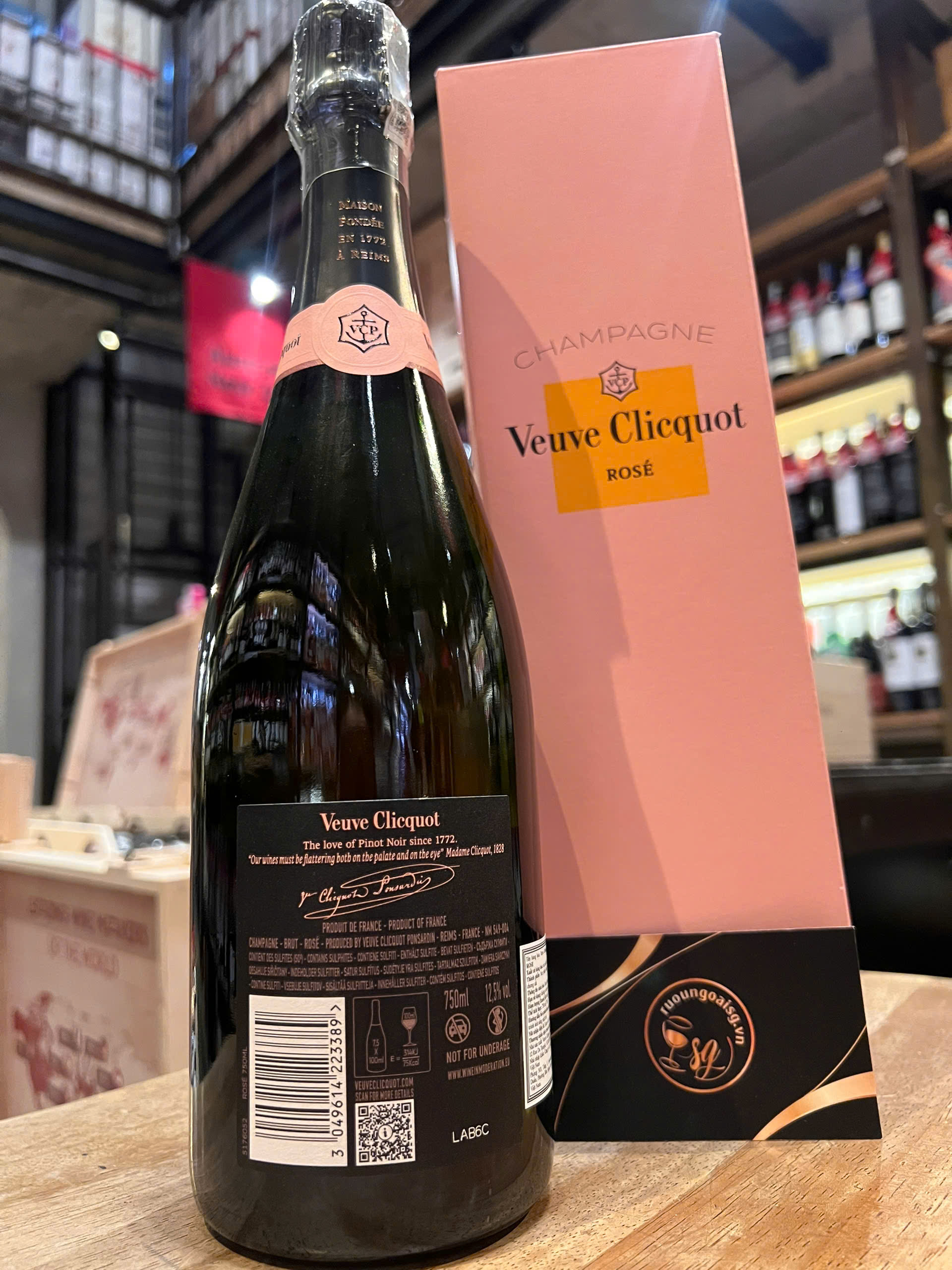 Rượu Champagne Veuve Clicquot Rose -Champagne hồng - Có màu sáng trong ánh hồng, hương thơm thanh nhã, phong phú, khởi đầu là hương trái cây đỏ tươi (mâm xôi, dâu rừng, anh đào, mâm xôi đen), tiếp đến là phảng phất của trái cây khô và banh ngọt vienna (quả hạnh, quả mơ và bánh mì ngọt). Sau cảm giác chạm môi tươi mát là vị trái cây tươi mát trên vòm miệng. Đây là loại rượu được cân bằng hoàn hảo trong phong cách champange hồng Veuve Clicquot tốt nhất, kết hợp của sự tinh tế sắc sảo. Sánh đôi hoàn hảo cùng các món khai vị có cà chua, cá thu, cua, phô mai và trái cây chín.