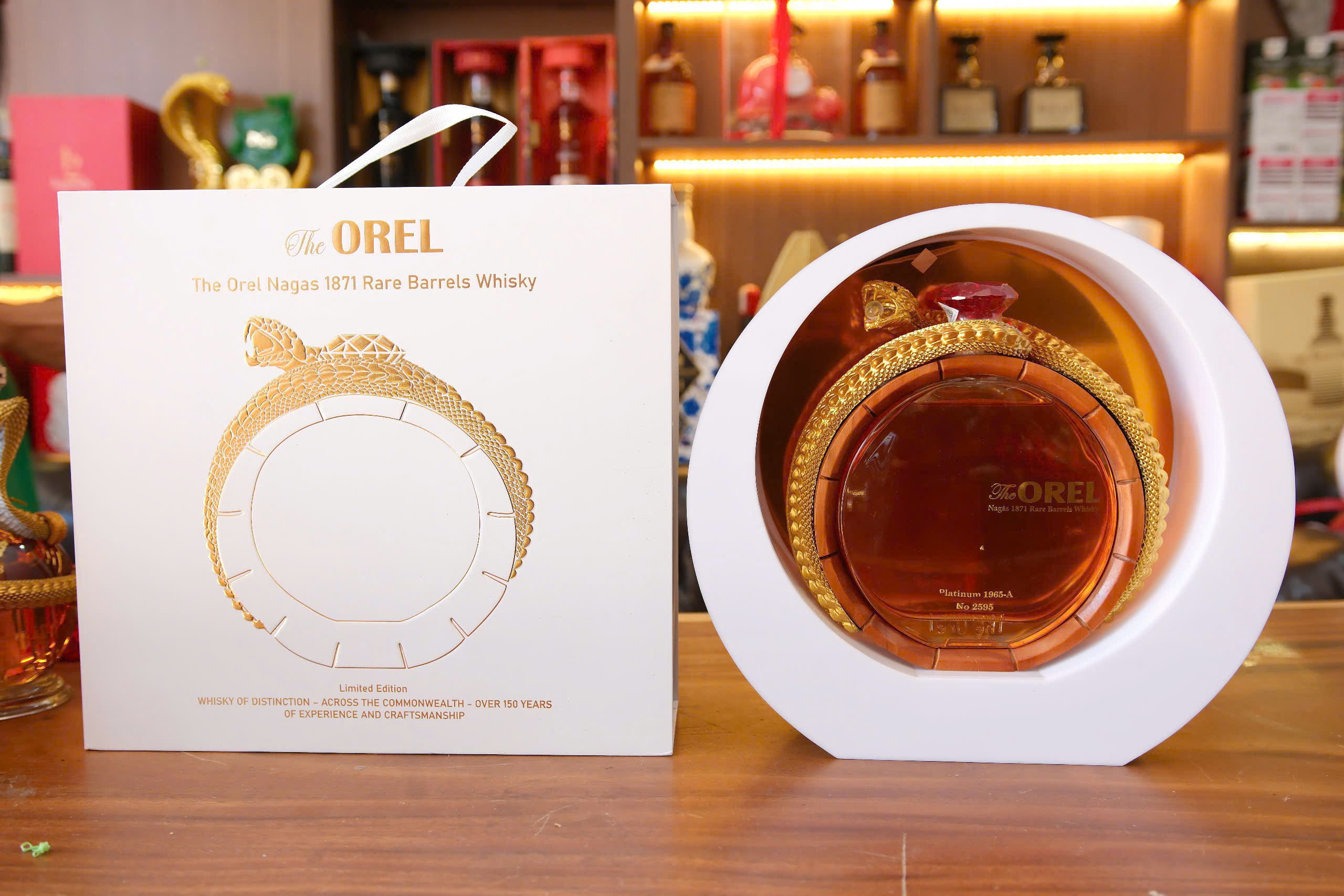 Lấy cảm hứng từ chiếc nhẫn vương quyền URAEUS của các Pharaoh, các nhà thiết kế của The Orel đã thiết kế nên một chai Whisky The Orel phiên bản “Nagas 1871 thùng gỗ hiếm” theo phong cách Vương Quyền, đẳng cấp và tinh tế