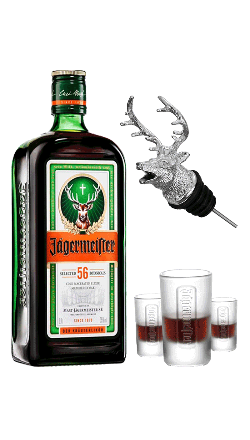 Jagermeister làm bộ quà tặng doanh nghiệp độc đáo là tên một loại rượu mùi có nguồn gốc từ thảo mộc, nổi tiếng thế giới (Trong tiếng Đức nó có tên gọi là Kräuterlikör có nghĩa là rượu mùi từ thảo mộc). Jagermeister làm từ 56 loại thảo mộc khác nhau, trái cây, rễ và gia vị … bao gồm những thành phần khá quen thuộc như: Cam Thảo, vỏ Cam Quýt, hoa Hồi, Nghệ Tây, hạt Anh Túc, Gừng, Nhân Sâm và quả Bách Xù, ngoài những loại vừa nêu, còn có rất nhiều thành phần khác, nhưng được giữ bí mật và không được công bố.