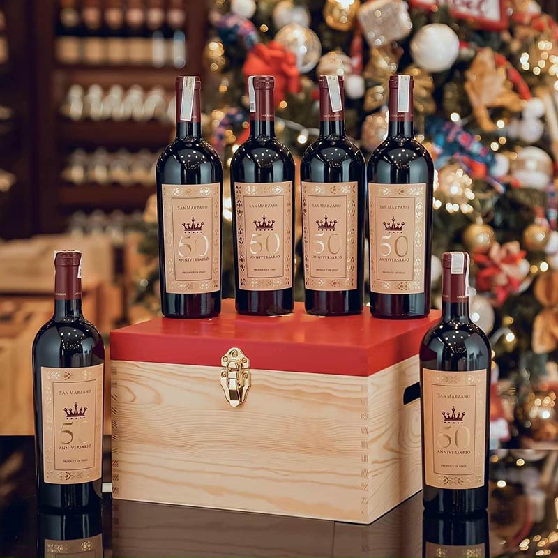 50 Anniversario là dòng rượu vang Ý đặc biệt, ra đời để kỷ niệm 50 năm thành lập tập đoàn San Marzano. Dòng rượu vang đỏ này thể hiện tinh thần và hoài bão vượt qua năm tháng của những gia đình đã làm nên lịch sử của tập đoàn. Họ là những người đầu tiên, với giấc mơ làm nên rượu vang chất lượng cho vùng Puglia, tràn đầy hy vọng, sự dũng cảm và nhiệt thành. Lựa chọn dòng rượu vang đỏ ý nghĩa này để làm quà tặng doanh nghiệp chính là sự lựa chọn tuyệt vời, gửi gắm lời chúc tốt đẹp đến đối tác, khách hàng thân yêu.