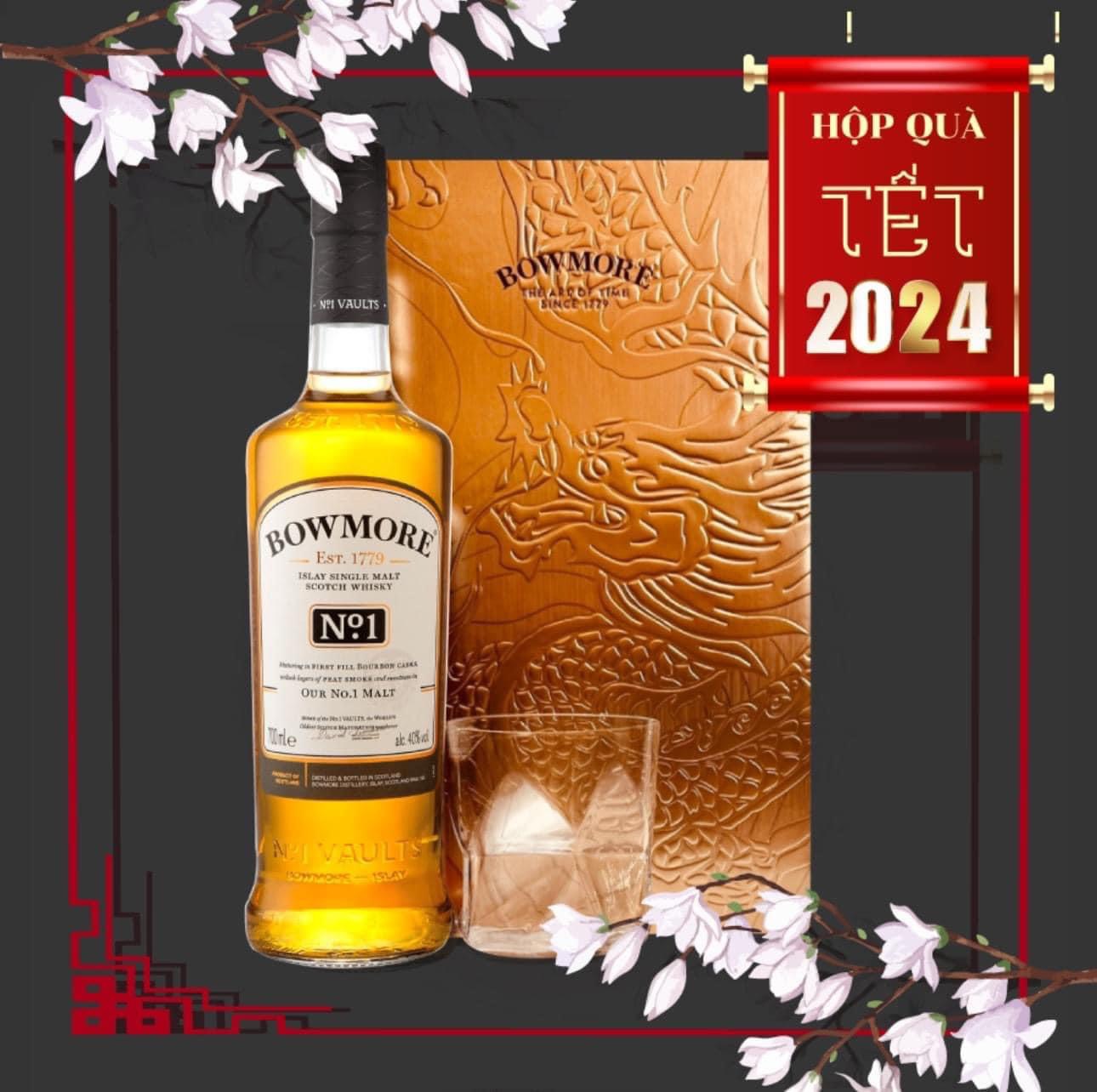 Hộp quà Tết 2024 với rượu whisky Bowmore No.1 là một lựa chọn tuyệt vời cho dịp Tết Nguyên Đán, mang đến sự sang trọng và tinh tế. Bowmore No.1 là một dòng whisky single malt nổi bật của Bowmore Distillery, nổi tiếng với hương vị khói nhẹ nhàng và hương biển đặc trưng của Islay.