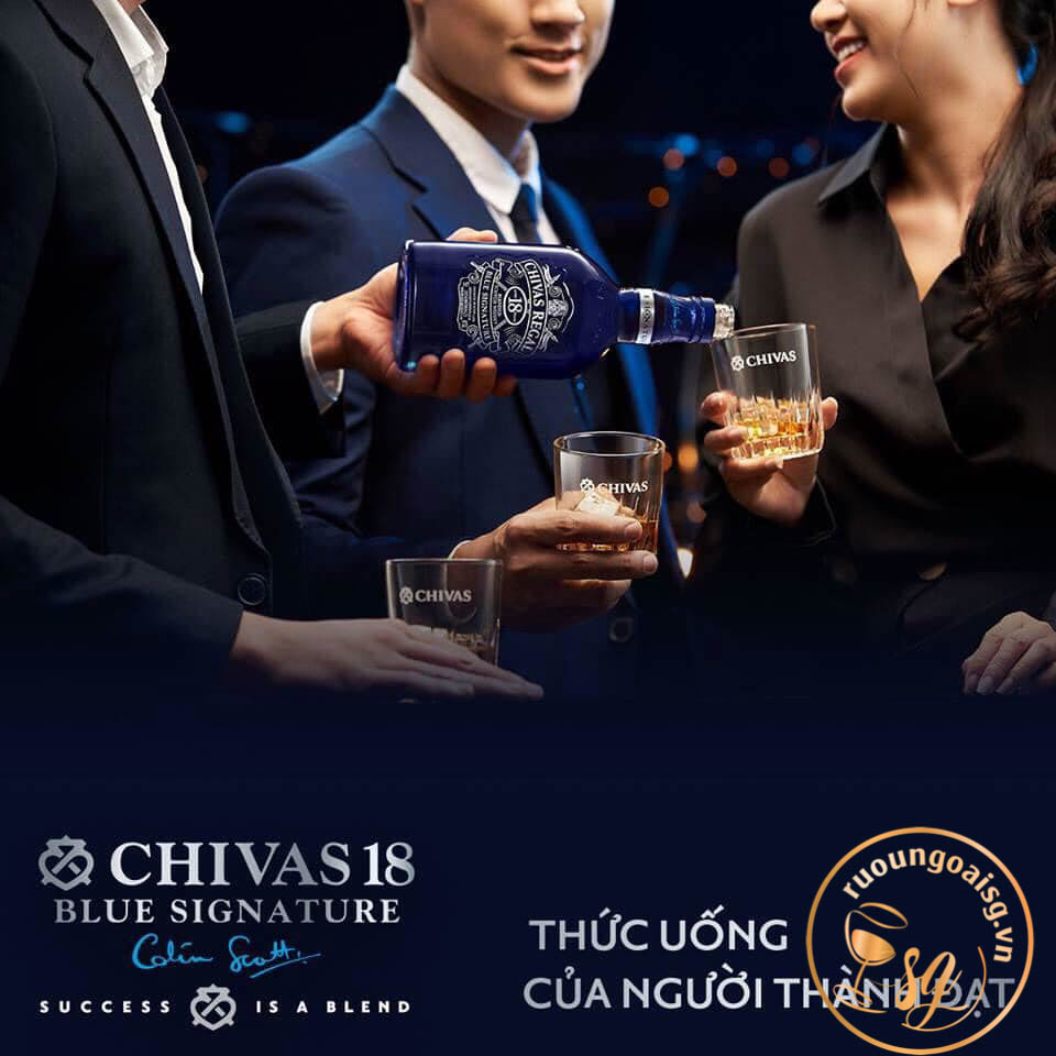 Thuộc danh mục nổi bật của Hãng Chivas Brothers, dành cho giới yêu rượu Whisky trên toàn Thế giới. Chivas 18 Blue Signature (Xanh) xứng đáng là dòng Chivas đỉnh cao để chia sẻ với những người bạn tốt. Chivas 18 Blue Signature sử dụng các loại Whisky nguyên liệu ban đầu được lựa chọn tỷ mỷ với một tỷ lệ cao các loại Whisky mạch nha từ lò chưng cất Strathisla và Longmom để tạo ra độ cân bằng, êm mượt của rượu. Chivas 18 Blue sở hữu màu xanh dương quyến rũ, cùng hương thơm ngọt mượt của Trái cây tươi chín như đào, lê ,táo ,cam và thoảng hương mật ong rừng. Giá khoảng 75 USD.